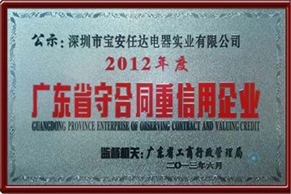 • 2012年度廣東省守合同重信用企業